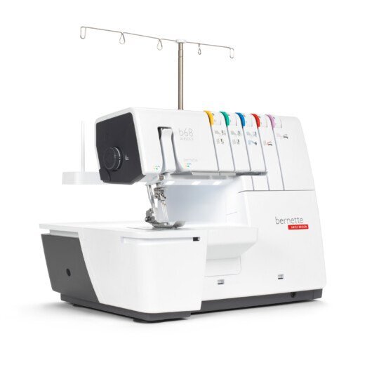 The bernette 68 is a combo machine with overlock, cover-, chain- and combo stitches. Its many strengths include an air threader for easy threading of looper threads, 5" (130 mm) of space to the right of the needle for comfortable sewing of large projects – especially for coverstitching, an integrated freearm for sewing cuffs, the bright illumination of the sewing area with 5 LEDs, and the Knee lifter for lowering and temporarily raising the presser foot. 31 different stitches leave nothing to be desired.